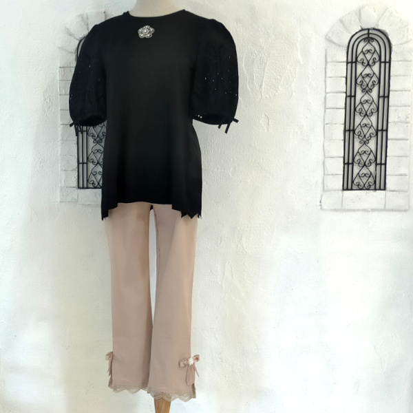 【LaLa 】超人気グレードアップ裾スカラップレーステーパードパンツ送料220円代引は通常送料 [1203233002]