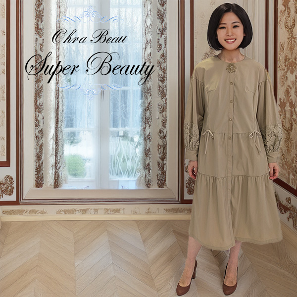 【SuperBeauty 】★レース切替のバルーン袖ティアードデザインロングブラ [1102425004]