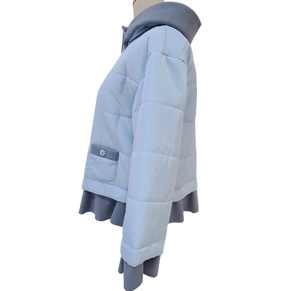 冬物らしい暖かさを保ちながらも、ミニパーカー付きでカジュアルに仕上げました。飾りボタンが上品なアクセントを添え、裾と袖口には異素材切替を施して洗練された印象をプラス。裏スナップボタンでスッキリとしたシルエットが楽しめるのもポイントです。この冬、特別な一着でスタイリッシュなコーディネートを楽しんでください!