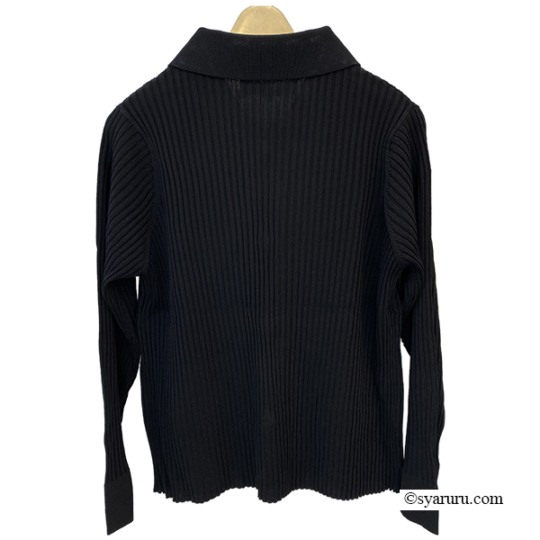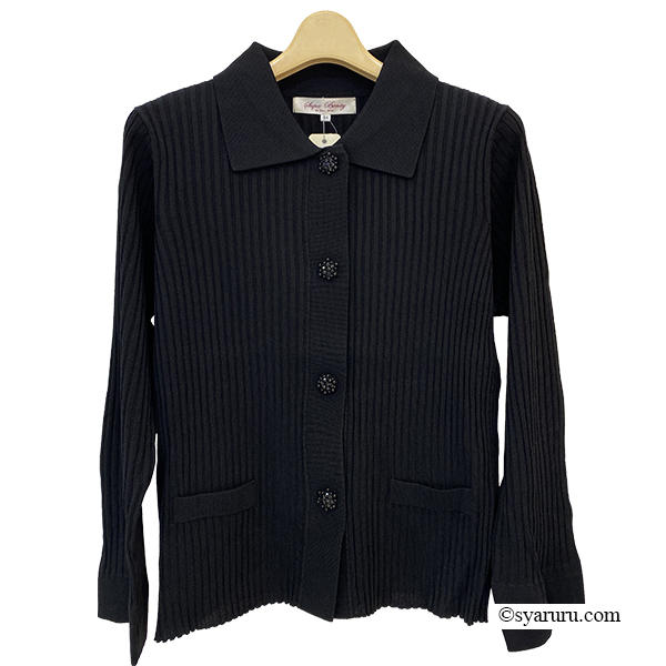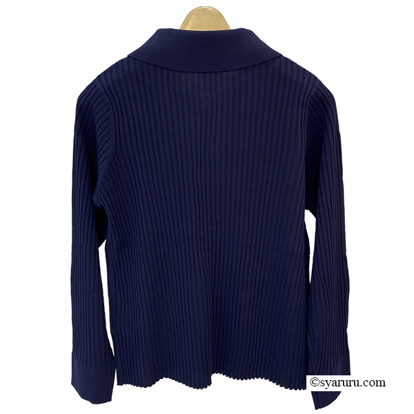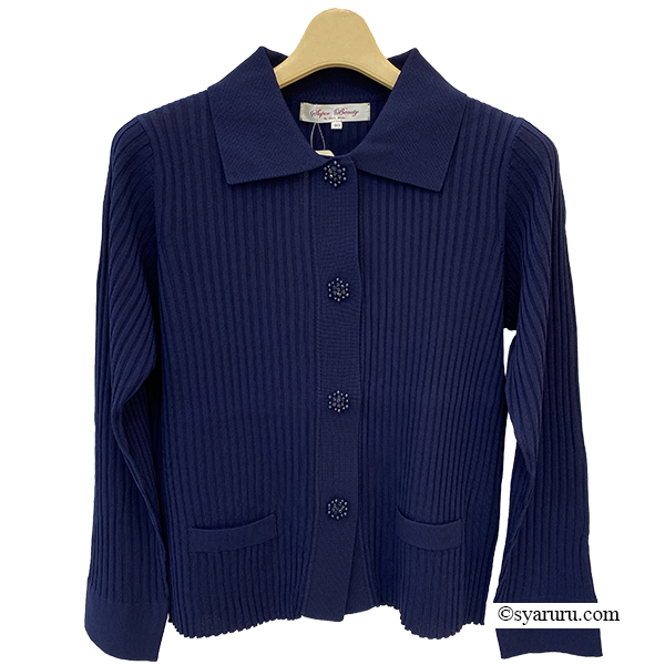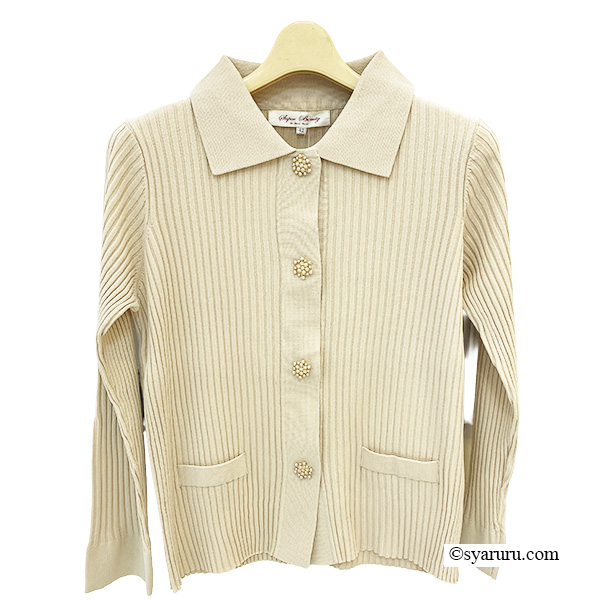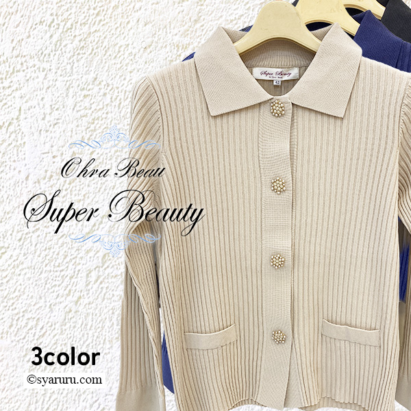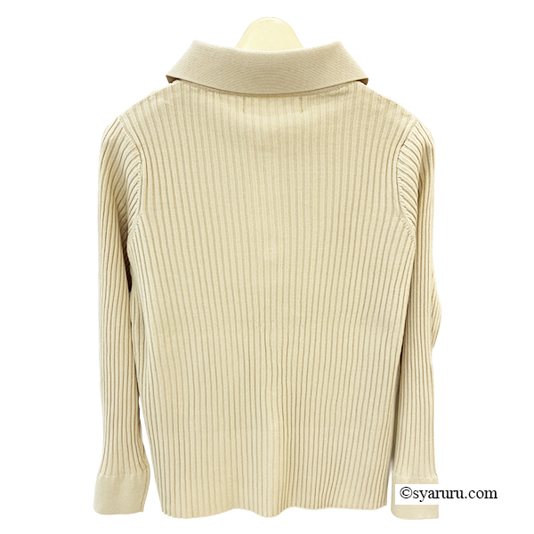 「襟付きリブ編みニットカーディガン」は、フィット感のあるリブ編みが身体のラインを美しく引き立てる、洗練された一着です。