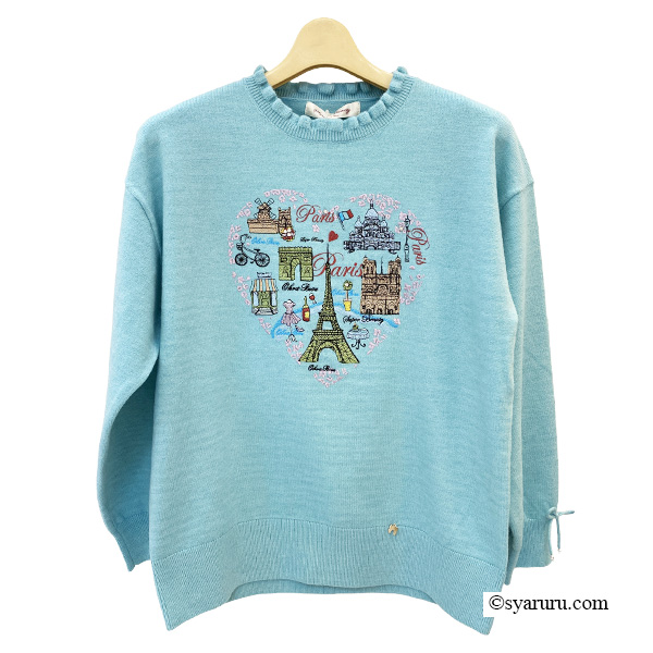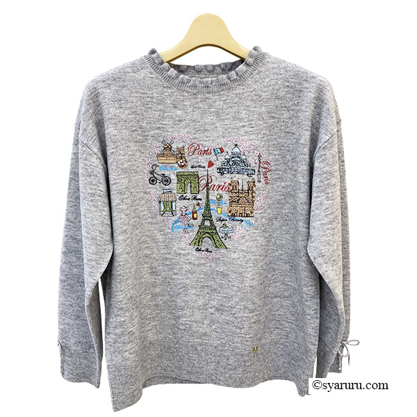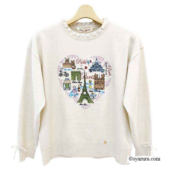 「胸元Paris刺しゅう入りフリルデザインセーター」は、まるでパリの街角を歩いているような気分にさせてくれる、ロマンティックな一着です。