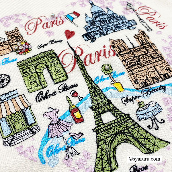 胸元には“Paris”の文字と華やかなハート型刺しゅうが施され、視線を集める愛らしいアクセントに。