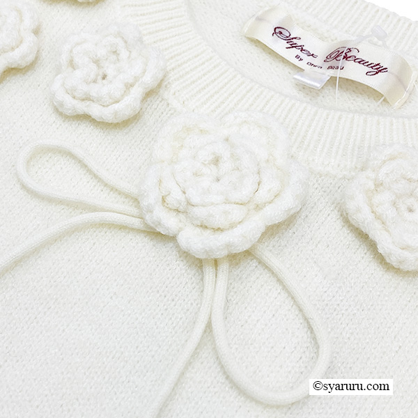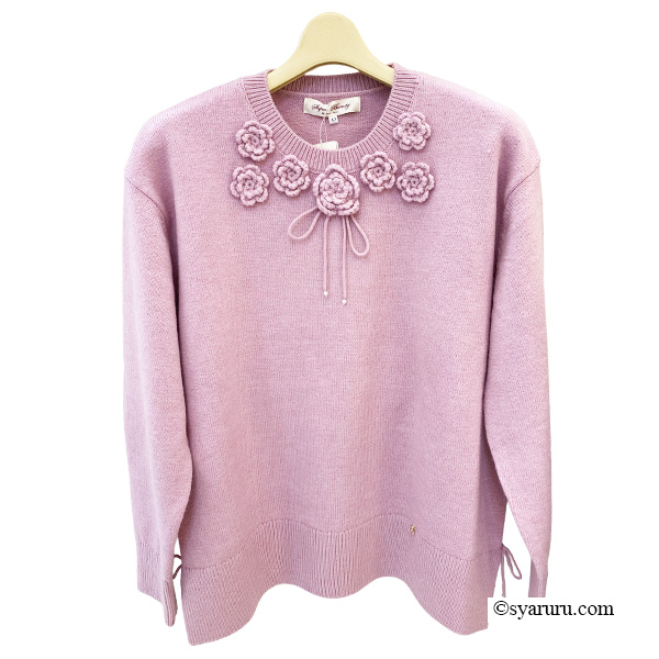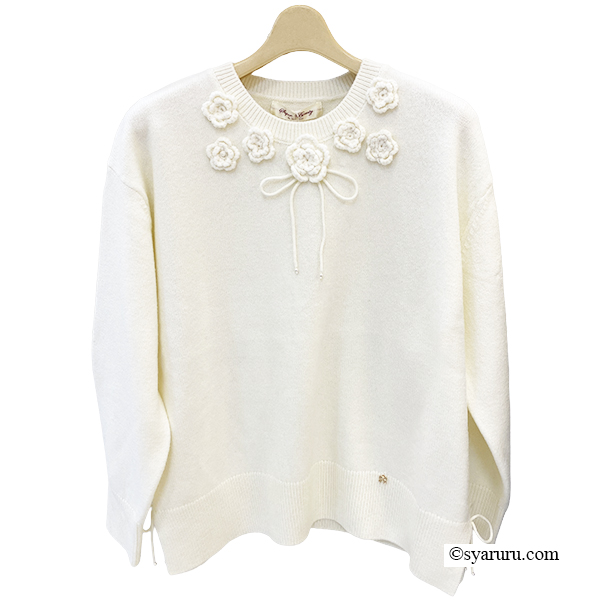 【新作 SuperBeauty 2025秋冬 クーポン&POINT可】胸元花モチーフ付ニットプルオーバー [1102521035]