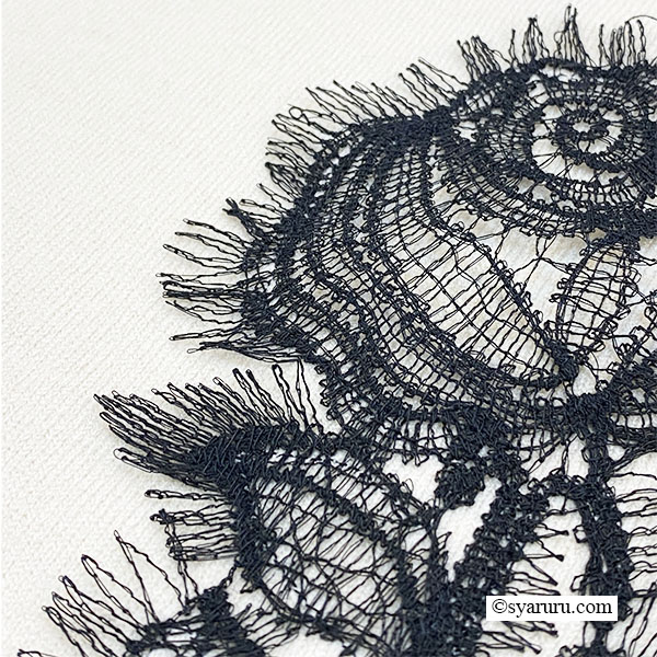 ネック部分の配色が、レースの美しさを際立たせ、シンプルながらも洗練された印象に。