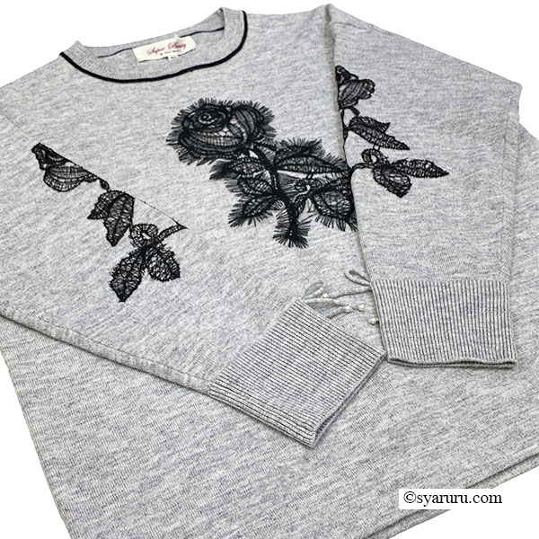 【新作 SuperBeauty 2025秋冬 クーポン&POINT可】花レース使い配色セーター [1102521037]
