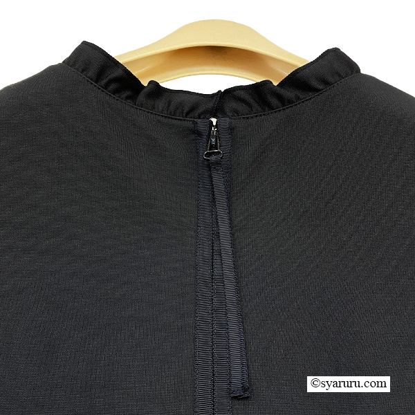 襟ぐりにはフリルをあしらい、ふんわりとした女性らしさをプラス。