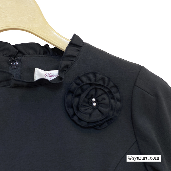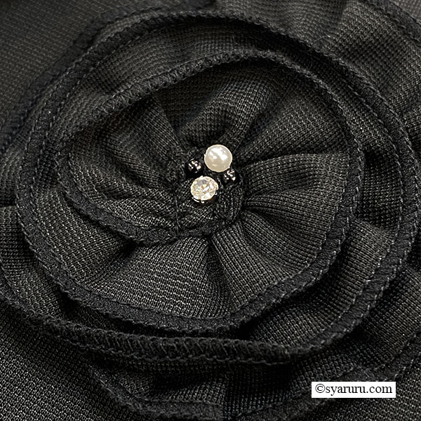 さらに、コサージュ付きのデザインが華やかさを引き立て、顔まわりを明るく見せてくれます。