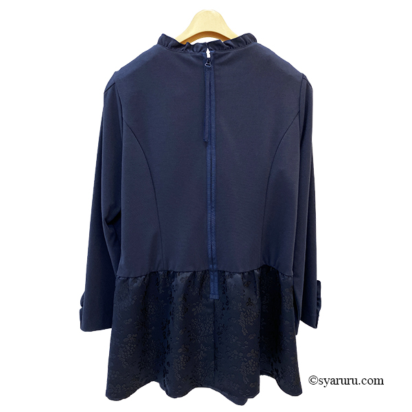 「ジャガード織切替 ポンチ素材チュニックカットソー」は、異素材の組み合わせが生み出す奥行きと、女性らしいディテールが魅力のチュニックです。