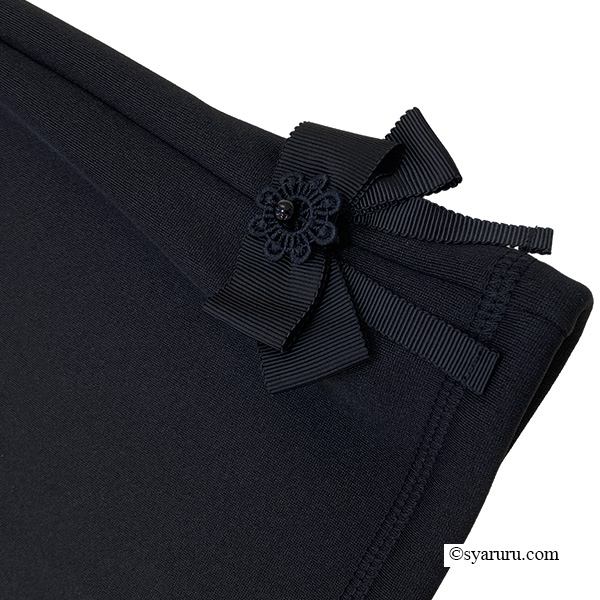後ろポケットには可愛らしいリボンをあしらい、実用性とデザイン性を両立。