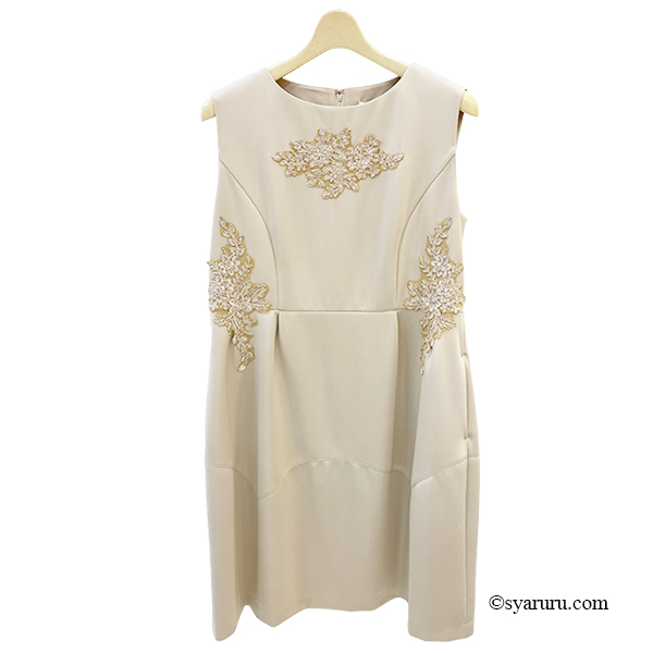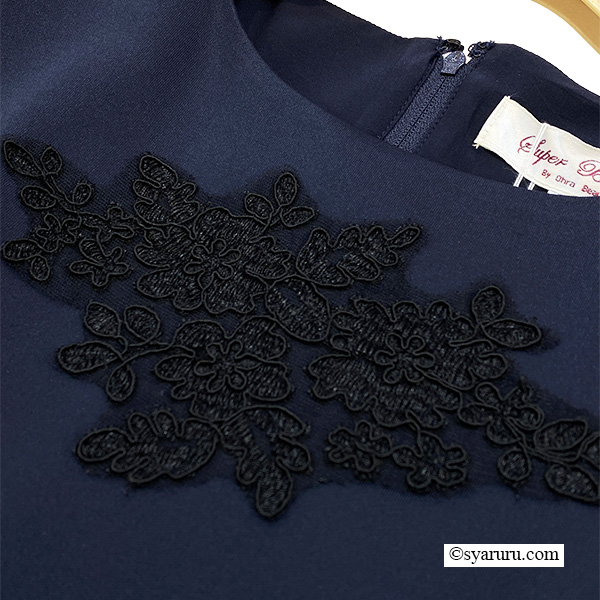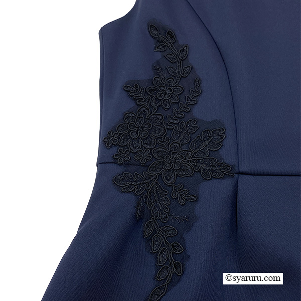 胸元にはエレガントなレースモチーフをあしらい、シンプルな中に華やぎを添えるデザイン。
