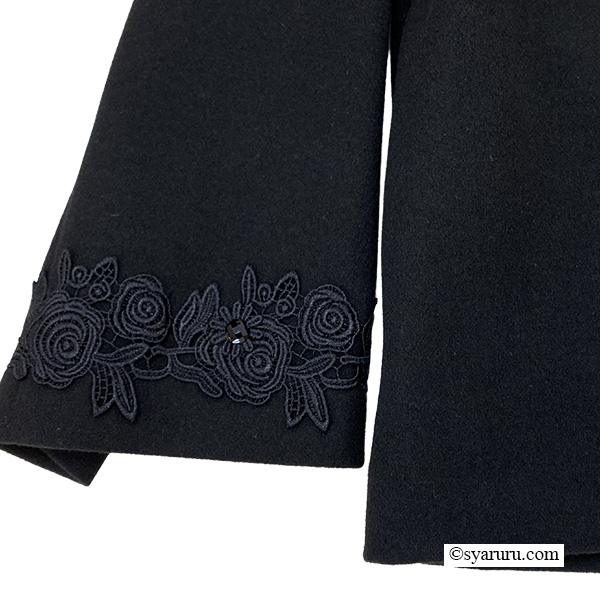 袖先にも同色のレースが施されており、細部にまでこだわったデザインが、上品さと女性らしさを引き立てます。