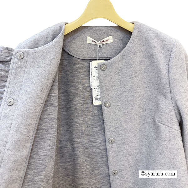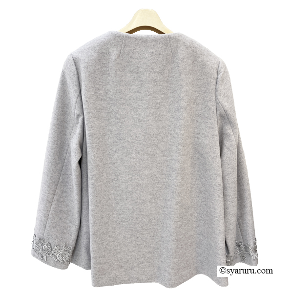ノーカラーのすっきりとしたデザインは、首元を美しく見せてくれるだけでなく、インナーとのレイヤードを楽しむのにも最適。