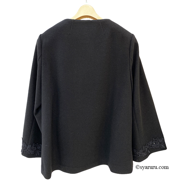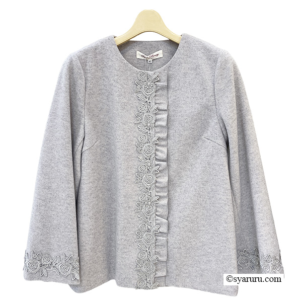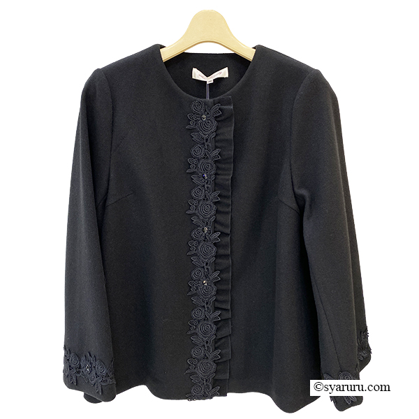「前立てレース×フリルデザインジャケット」は、シンプルなスタイルにひとさじのエレガンスを添える、大人の女性にぴったりの一着です。