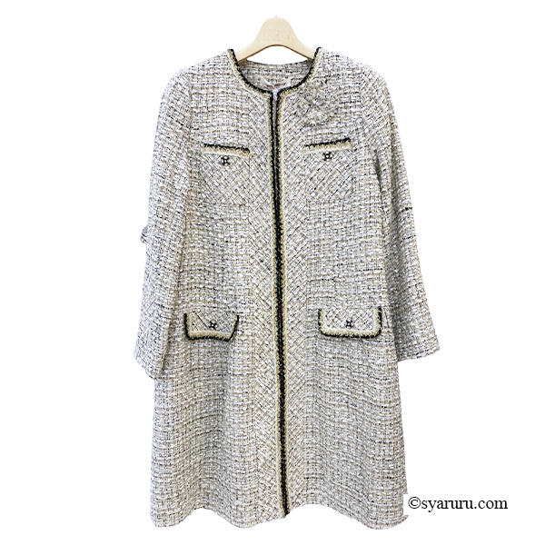 「ツイード生地ノーカラーロングジャケット」は、ただの防寒着ではありません。