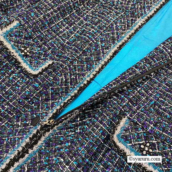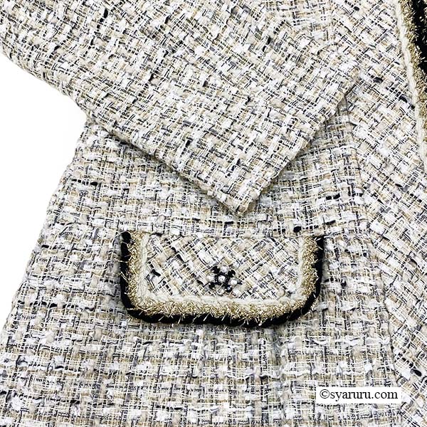 そして何より、ツイード生地ならではの重厚感と暖かさ。秋冬の冷たい空気の中でもしっかりと体を包み込み、快適さを保ちながら、見た目にも上質な雰囲気を漂わせます。