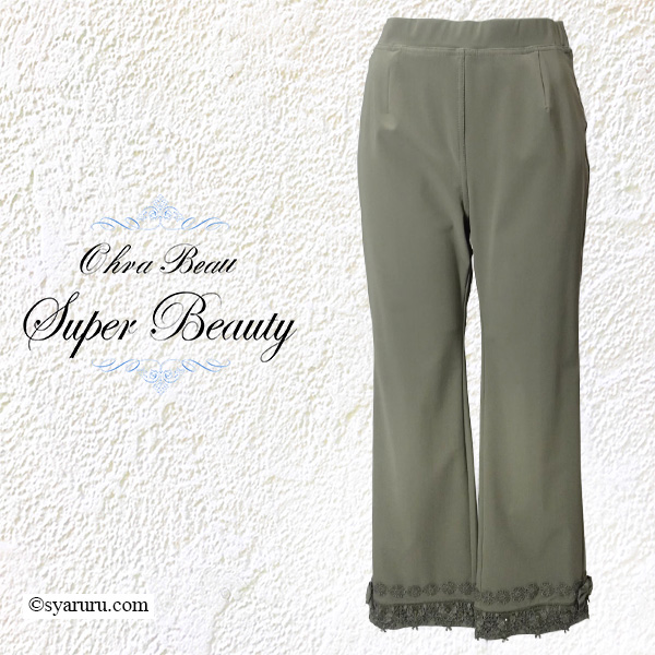 【《30%OFF!》SuperBeauty 2025秋冬】裾レース×リボン使いストレッチ素材パンツ [1102524001]