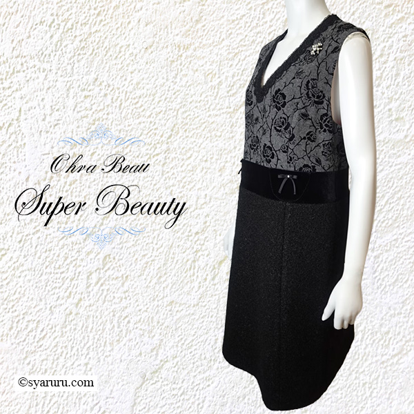 【《30%OFF!》SuperBeauty 2025秋冬】Vネックフロッキープリント切替ワンピース [1102526021]