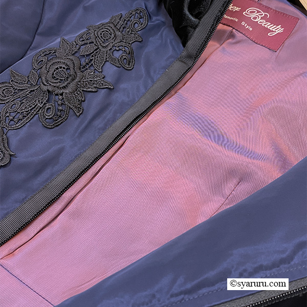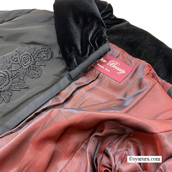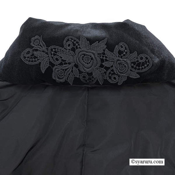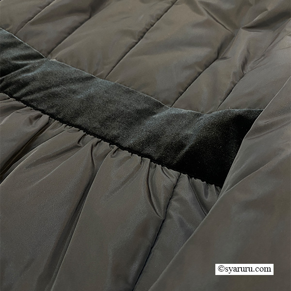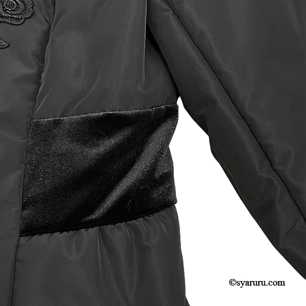 さらに衿・袖先・裾に贅沢にあしらわれたベロア素材が、高級感を一層引き立てます。しっとりと柔らかな肌触りは思わず触れたくなるほどで、寒い冬の日でも上質な心地よさに包まれます。機能面でも優秀で、ジップアップタイプを採用しているため防寒性が高く、冷たい風をしっかりシャットアウト。暖かさを逃さないのはもちろん、着脱や動きやすさにも優れているので、日常使いから特別なお出かけまで幅広く活躍します。