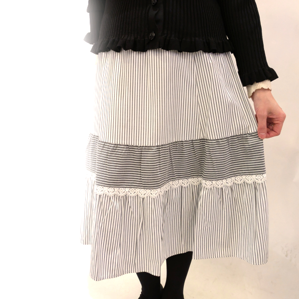 【15,000円 →超特価 3,900円<在庫限り>クーポン/POINT不可】ストライプ裾異素材切替のタフタ素材スカート [1102513005]