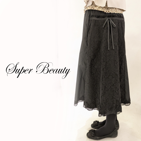 【16,000円 →超特価 5,900円<在庫限り>クーポン/POINT不可】タフタとサイドレース切替のスカート [1102513004]
