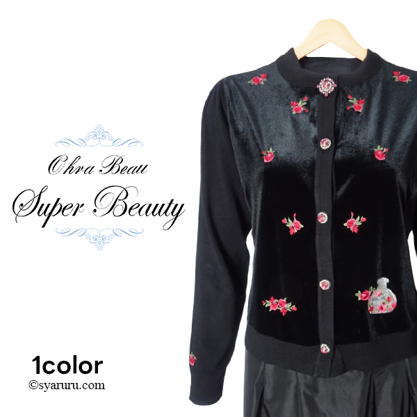 【新作 SuperBeauty 2025秋冬 クーポン&POINT可】花×香水瓶刺しゅうベロア素材×ニットカーディガン [1102521054]