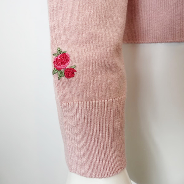 「香水瓶刺しゅう ベロア素材×ニットカーディガン」は、エレガントな雰囲気と細部へのこだわりが光る、冬の装いに華やかさを添える主役アイテムです。