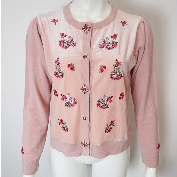 【《30%OFF!》SuperBeauty 2025秋冬】香水瓶刺繍ベロア素材×ニットカーディガン [1102521015]