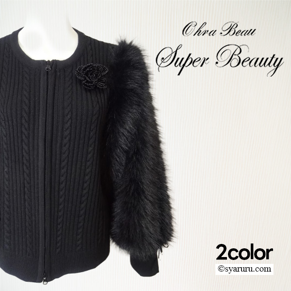 【新作 SuperBeauty 2025秋冬 ALL30%OFF!】袖フェイクファーデザインジップアップニットジャケット [1102521022]