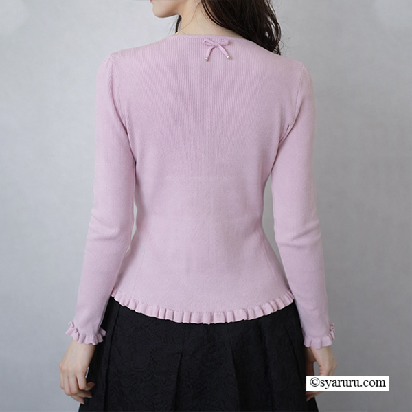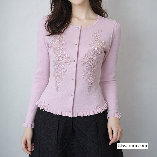 【《新作》SuperBeauty クーポン1111(10%OFF)他 利用可】前立てスパンコール使い裾フリルカーディガン [1102611005]