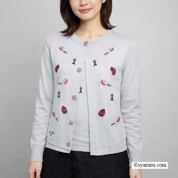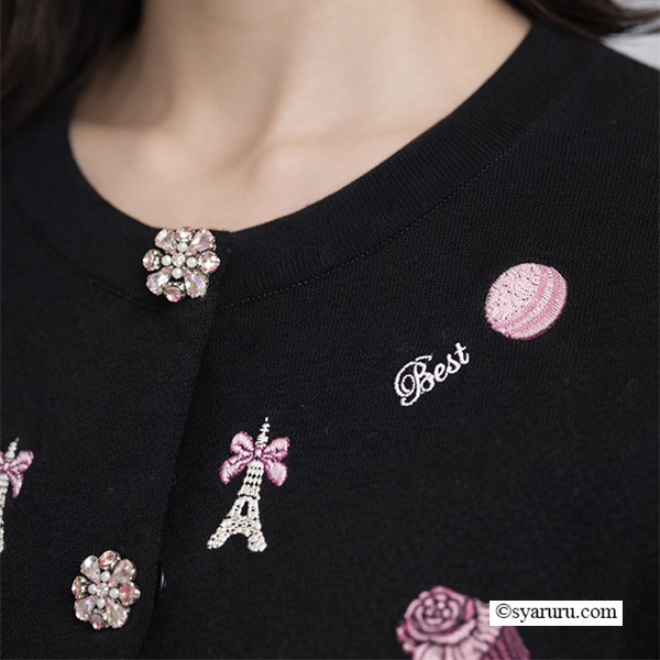 【《新作》SuperBeauty クーポン1111(10%OFF)他 利用可】スイーツ刺繍ニットカーディガン [1102611013]