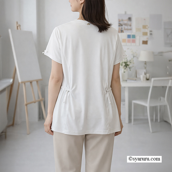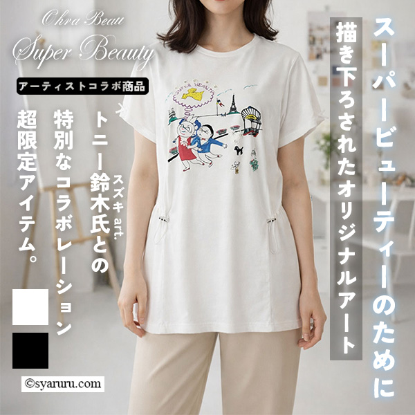 【《新作》SuperBeauty クーポン1111(10%OFF)他 利用可】ラビットイラスト ドローストリングギャザーデザインロングTシャツ [1102612014]