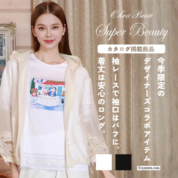 【《新作》SuperBeauty 2026春夏】ラビットイラスト 裾レース切替パフ袖ロングTシャツ [1102612015]