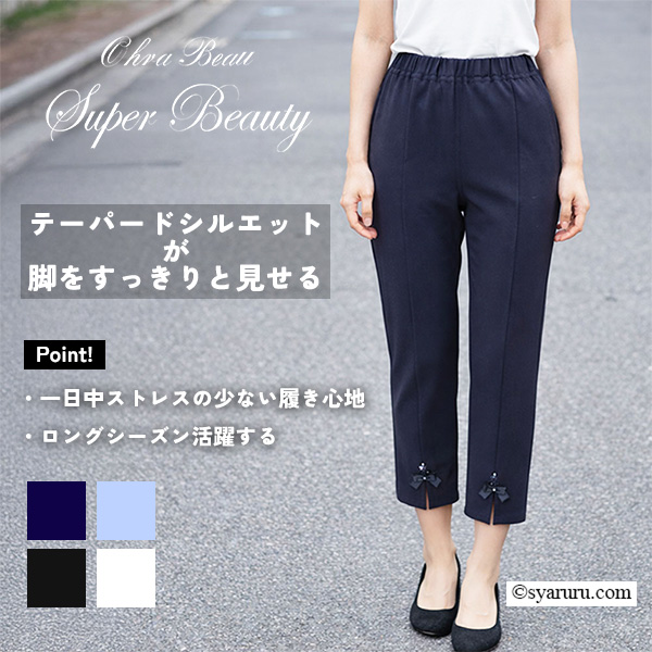 テーパードシルエットが脚のラインをすっきりと見せ、スタイルアップ効果も期待できます。