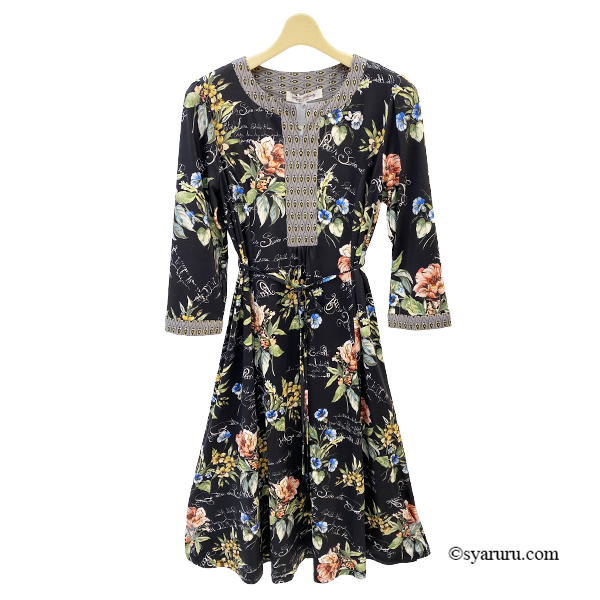 【《新作》SuperBeauty クーポン1111(10%OFF)他 利用可】胸元スリット入り多色使い ジャージ素材七分袖ワンピース [1102616006]