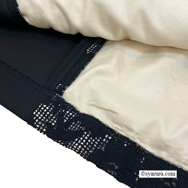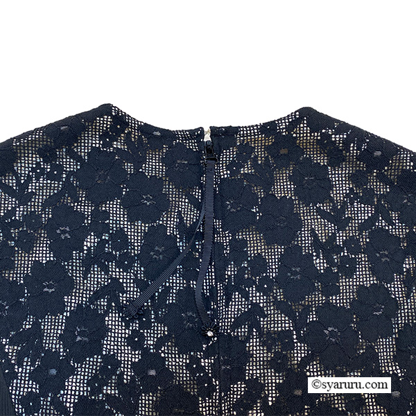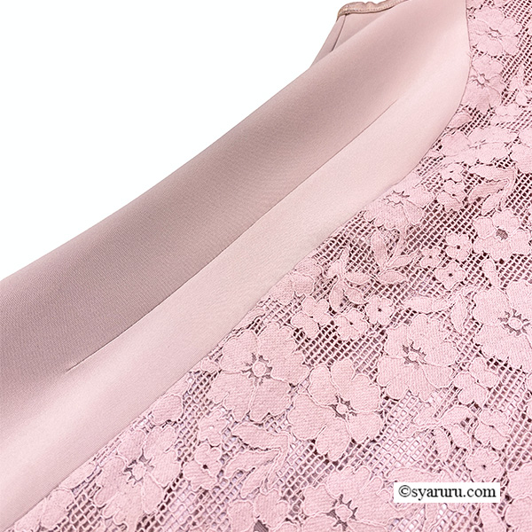 最大の魅力は、前身頃に重ねた繊細な透かしレースとオーガンジーの奥行きある表情。