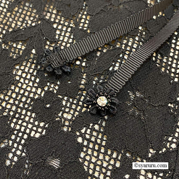 光の加減でふんわりと浮かび上がるレースの陰影が、装いに上質な立体感と特別感をもたらします。