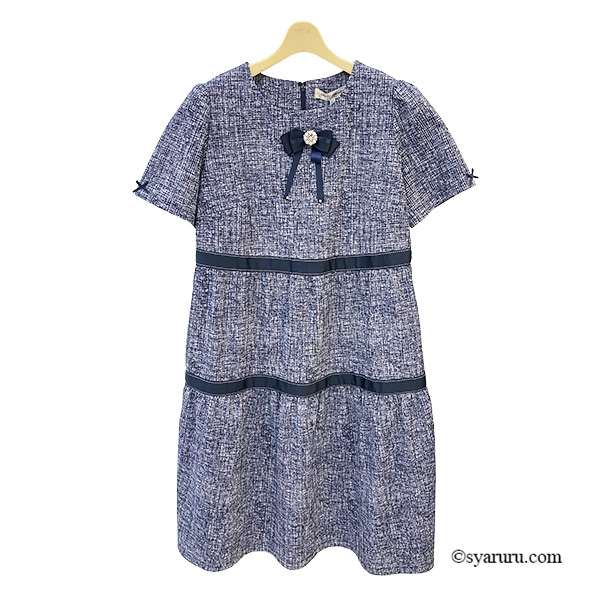 ティアード切替部分にあしらったグログランテープが、上品なアクセントとなり、シンプルな中にも洗練された存在感を添えます。