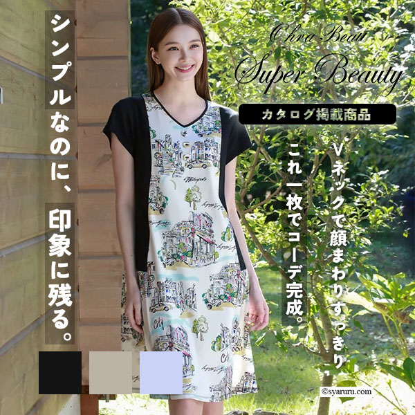 【《新作》SuperBeauty 2026春夏】街並み風景プリントVネック半袖ワンピース [1102616029]